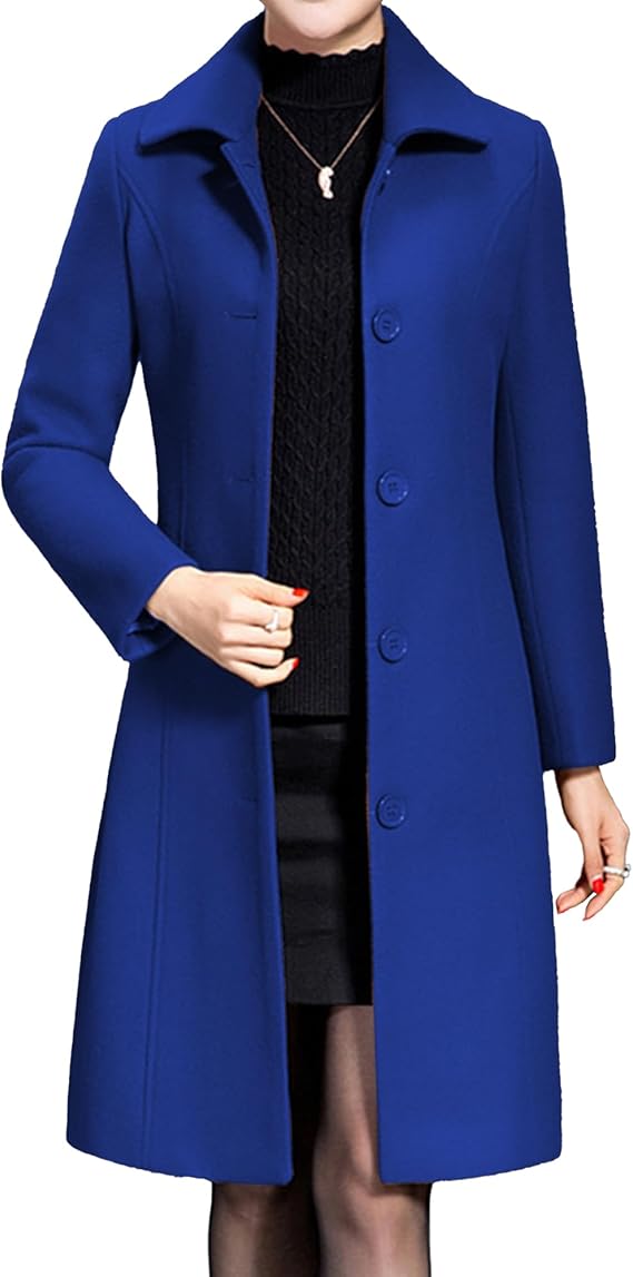 Women's Wool Pea Coat Single Breasted Trench Coat Winter Lapel Long Jacket Overcoat with Pockets