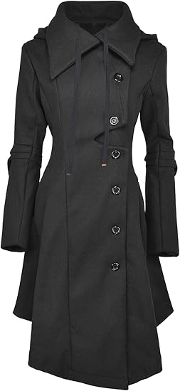 Long Trench Pea Coat for Women - Wool Winter Trench Coat Goth Lapel Peacoat Outwear Thick Hood Pea Jacket Trenchcoat