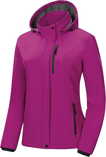 Women's Softshell Jacket Lightweight Fleece Lined Rain Jacket Waterproof Warm Windbreaker Coat With Removable Hood