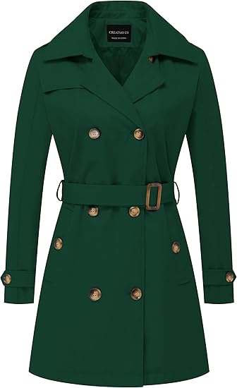 Women's Double-Breasted Trench Coat Classic Lapel Overcoat Slim Outerwear Waterproof Coat with Belt Buckle