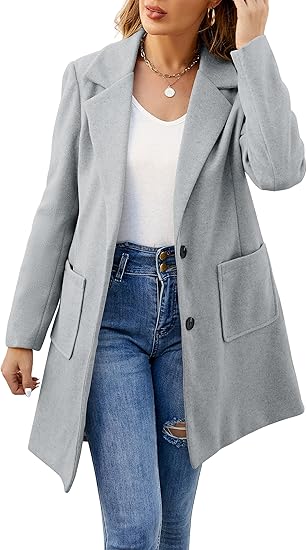 Womens Long Wool Pea Coats Notched Collar Open Front Woolen Blend Trench Coat with Belt