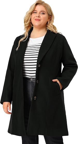Women's Plus Size Coat Single Breasted Notched Lapel Elegant Long Winter Coats 2024