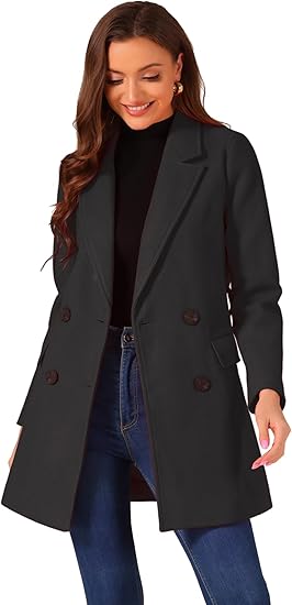 Women's Wool Pea Coat Notched Collar Double Breasted Midi Long Trench Coat Outwear