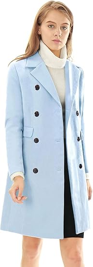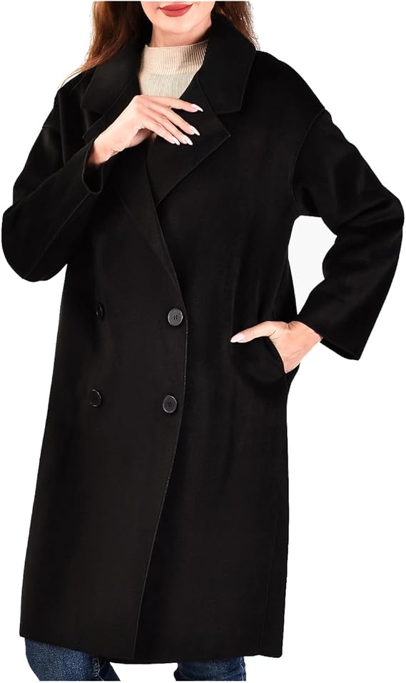 Women's Winter Double Breasted Wool Coat Notch Lapel Long Trench Jackets Pea Coats Overcoat