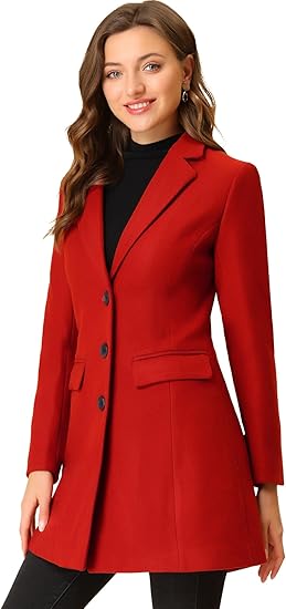 Women's Winter Warm Wool Dress Overcoat Notch Lapel Single Breasted Coat Elegant Lapel Long Trench Coat Jacket