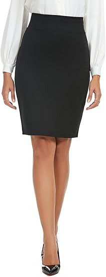 Women's Stretchy Knee Length High Waist Work Business Bodycon Midi Ponte Pencil Skirt
